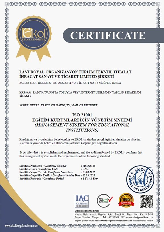 Tüm bu belgeler, eğitimlerimizin güvenilirliğini ve kurumsal yapımızın profesyonelliğini belgelemektedir.