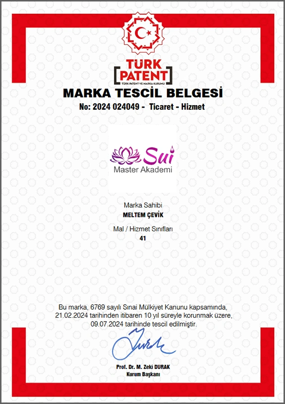 SuiMaster Akademi, Last Royal Group Inc. bünyesinde faaliyet gösteren; Türk Patent ve Marka Kurumu tarafından tescillenmiş bir markadır. Aynı zamanda, iki ana grup eğitimi olan ALPHA5 ve İmminarix Zihin Eğitimleri de markamız bünyesinde tescillenmiş, özgün ve ileri seviye programlardır.
