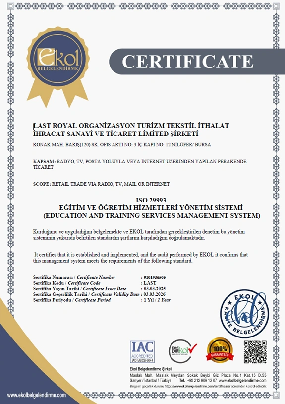 Tüm bu belgeler, eğitimlerimizin güvenilirliğini ve kurumsal yapımızın profesyonelliğini belgelemektedir.